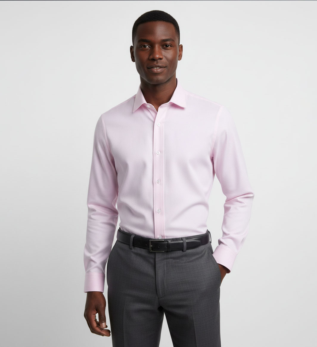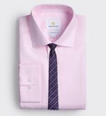 Designed for comfort and polish, the Regular Fit Pink Non Iron Shirt features a semi cut away classic collar and single cuffs, ensuring versatility across formal and smart casual settings.